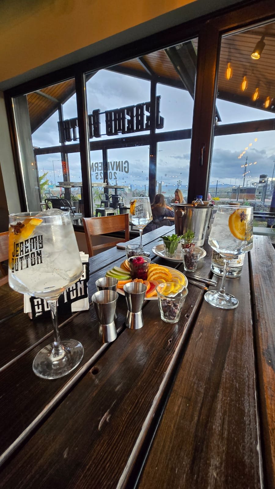 La experiencia comienza con el pick up por el hotel, desde donde iniciaremos un recorrido por los puntos más emblemáticos de la ciudad más austral del mundo. Visitaremos uno de sus miradores para disfrutar una vista panorámica incomparable del Canal Beagle y las montañas que rodean la ciudad. Continuaremos hacia el antiguo aeropuerto y el sitio donde se estableció la Misión Anglicana, primer asentamiento de Ushuaia, donde conoceremos los orígenes de la ciudad y su evolución. Luego, realizaremos un reconocimiento exterior del histórico Presidio de Ushuaia y la zona céntrica antes de dirigirnos al punto más esperado del tour: la Gintonería Jeremy Button. La Experiencia Jeremy Button: Sumergite en el universo del gin artesanal patagónico. La actividad comienza con una cata guiada donde se degustan las variedades de gin London Dry y la edición especial de verano. Luego, cada participante podrá crear su propio gin tonic, aplicando técnicas básicas de coctelería clásica, acompañado de un exquisito servicio de finger food diseñado para resaltar los aromas y sabores del gin. El menú incluye: mini pulled pork, croquetas de espinaca y provolone con alioli de ajo asado, ravioles fritos de jamón y muzzarella con pesto, quesadilla de pollo ahumado con guacamole, empanadas fritas de carne con salsa criolla, olivas marinadas y bruschetta de jamón crudo con tomate confitado.   Duración: aproximadamente 2 horas Cupo: mínimo 4 – máximo 20 personas Disponibilidad: todos los días de 18:00 a 20:00 hs Mayores de 18 años Una propuesta ideal para quienes buscan combinar historia, paisajes y la mejor coctelería artesanal de Ushuaia.